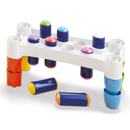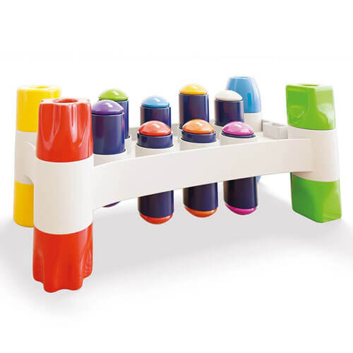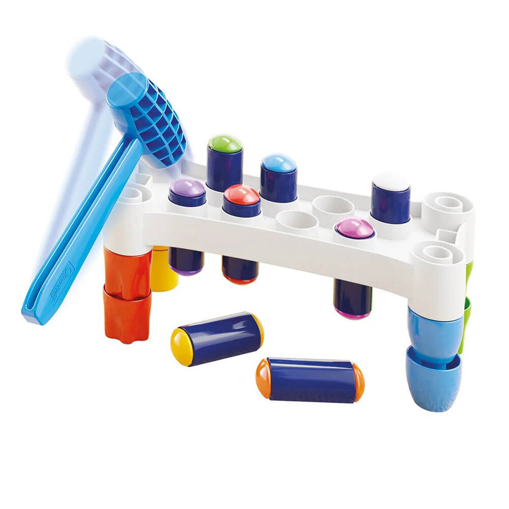 • Have fun hitting the colourful pegs with the hammer and when you have finished turn the game upside down and start again.