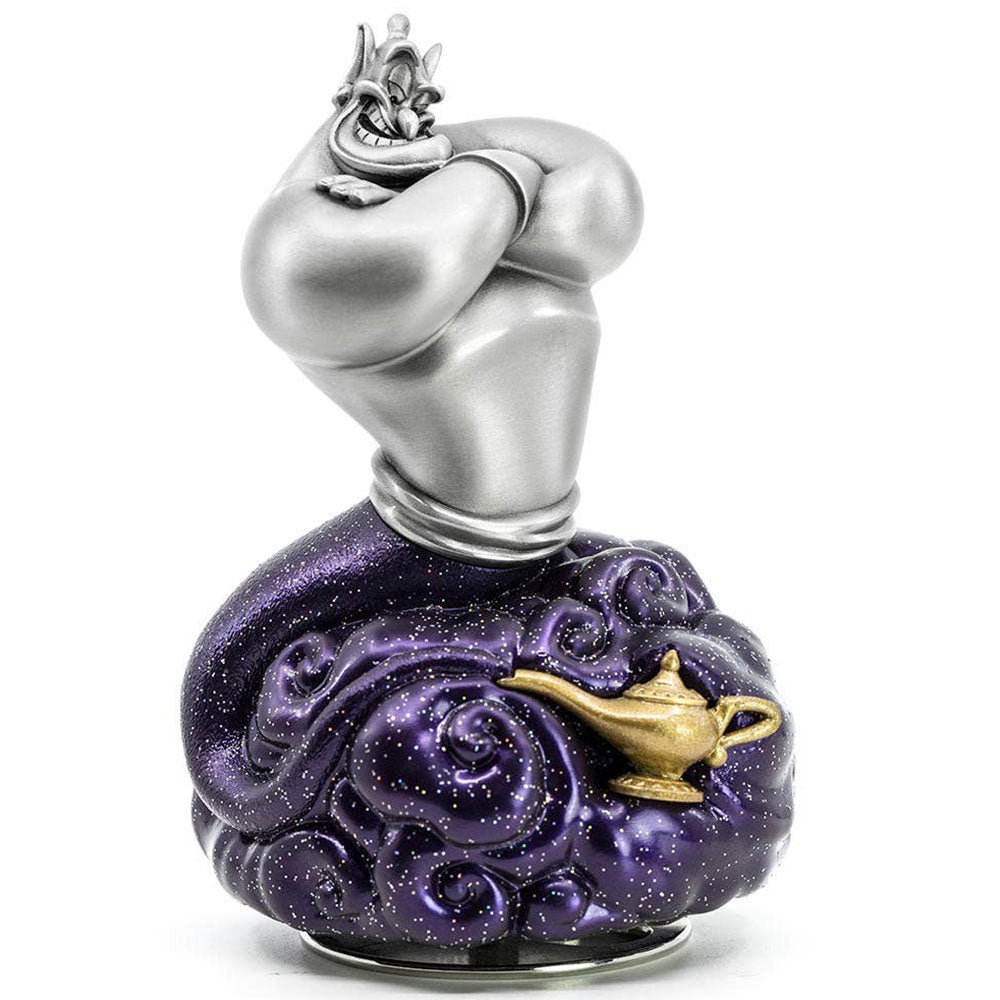 Disney's animated cartoon of a story from The Book of One Thousand and One Nights, itself an 18th century take on an earlier Syrian folk tale, features a crowd-pleasing genie, emerging from his lamp and belting out a brassy 40s swing-style Friend Like Me on first meeting a befuddled Aladdin. In pewter, on a base of composite resin.