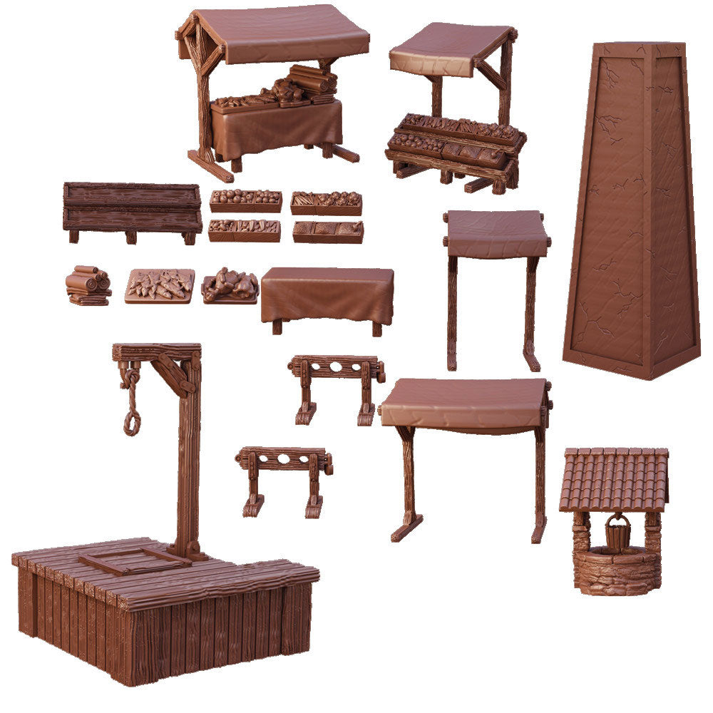 The TerrainCrate Village Square is a meticulously crafted tabletop terrain set that transports you to a charming medieval village. This highly detailed and versatile set allows you to create your own village layout, enhancing gameplay with functional elements like removable roofs and opening doors. Crafted from durable materials, it's perfect for tabletop role-playing games or creative diorama projects. Expand your world with TerrainCrate and let your imagination run wild.